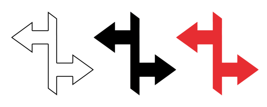 A white and red arrow icon set on a transparent background for directional navigation
