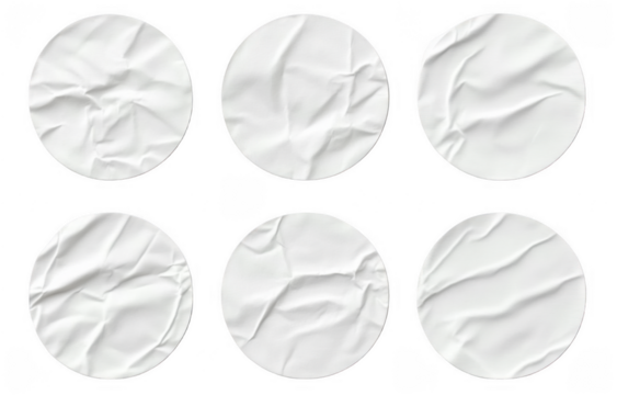 Blank white round paper sticker label set isolated on white background