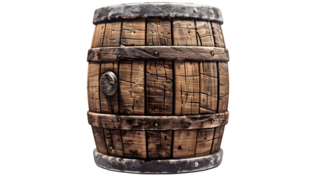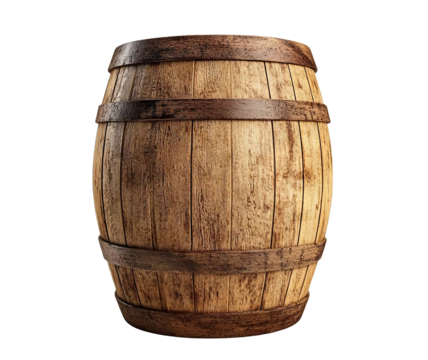 Wooden barrel isolated on a transparent background cut out.