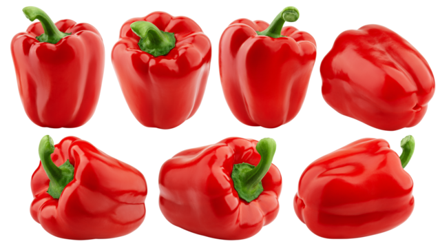 Set of fresh whole and sliced green bell pepper isolated on white background. With clipping path. Full depth of field. Focus stacking