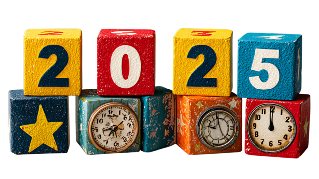 A set of alphabet building blocks spelling TOY against a white background on transparent background