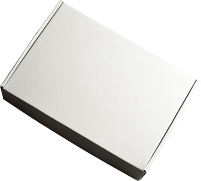 A plain white box on a simple background, often used for packaging or storage purposes.