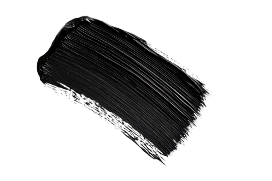 Mascara brush stroke texture black paint swatch makeup smudge ink isolated on transparent background