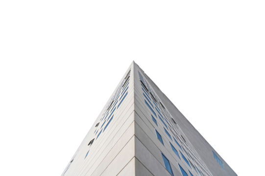 Bottom view on a modern white building angle isolated on a transparent background