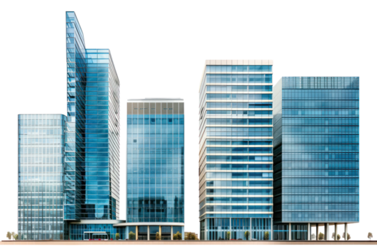 Modern skyscrapers skyline isolated on white background. PNG transparent.