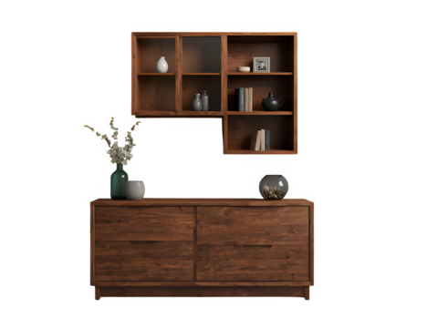 wooden cabinet Interior design concept furniture for living isolated on clear PNG background and transparent background, AI generative.