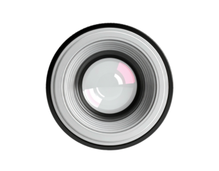 Stylized purple camera icon with white lens highlight and shadow against a black background
