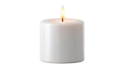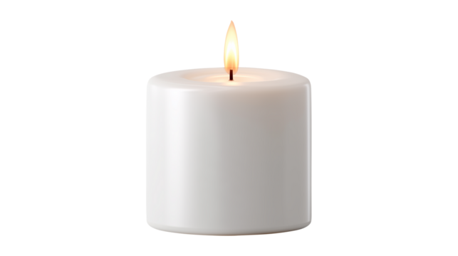 A beautiful white candle with a flickering flame, creating a warm and serene atmosphere.