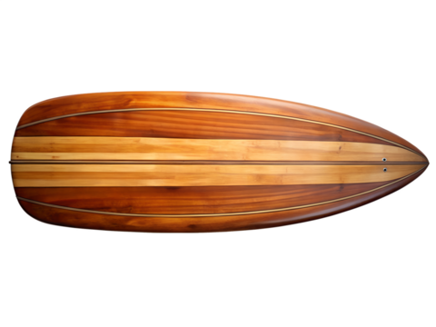 wooden paddle board isolated on white background. Transparent PNG file type available .