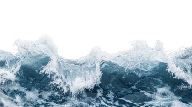 Ocean wave cresting, vibrant blue water splashing, powerful surfing energy on transparent background