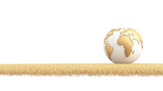 Two golden ears of wheat crossed against a white background, symbolizing agriculture and harvest.