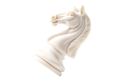 Transparent white knight chess piece design on white background