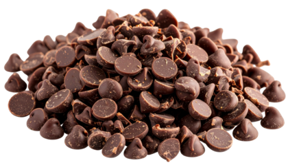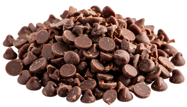 A set of delicious chocolate chips isolated on a white background