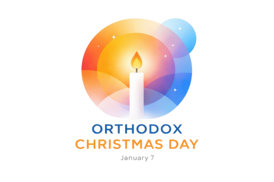 Orthodox christmas day colorful candle flame surrounded by vibrant circular shapes and designs pure white background cutout