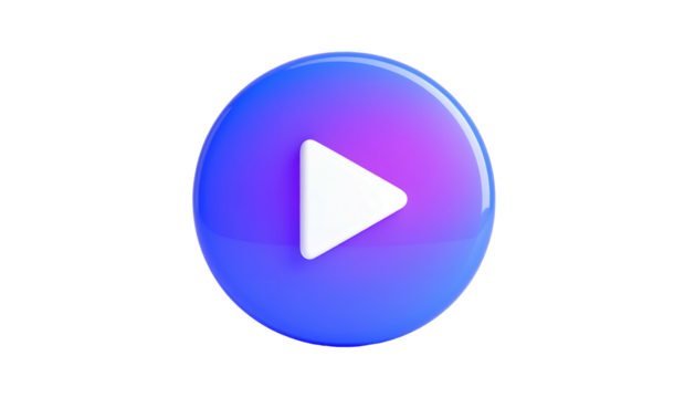 Shiny, gradient-colored circular play button with a white triangle on a black background