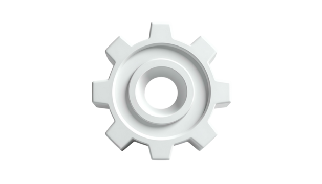 Grey cog illustration on transparent background for workflow design