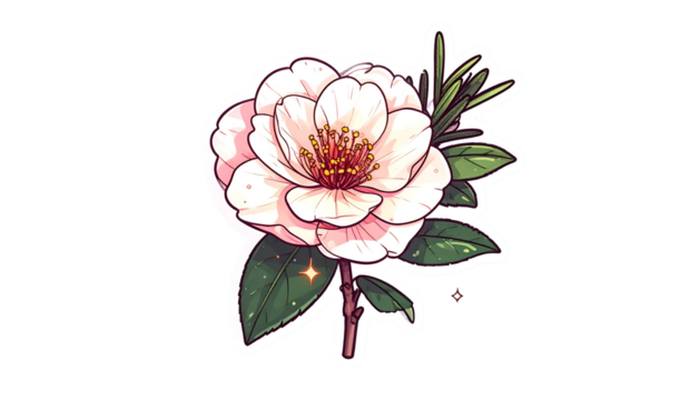 Whimsical blue flower and star sparkles on transparent background