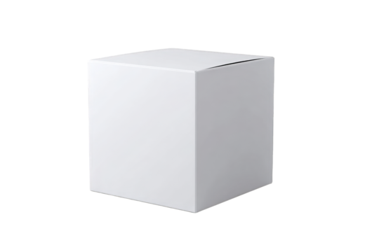 High resolution white cube box mockup template for product display and packaging design, isolated on transparent background