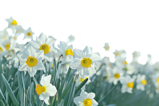 Easter sunday white daffodils isolated on transparent background