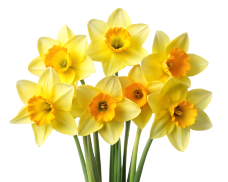 Bunch of bright yellow daffodils on a white background