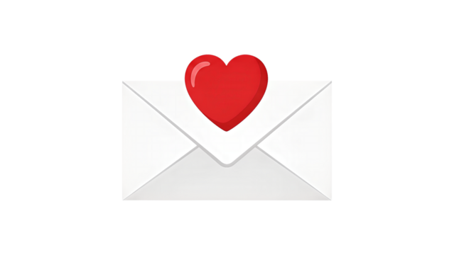 Love Letter Envelope with Red Heart Icon on White Background 1. transparent background