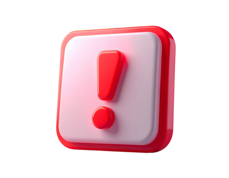 3D Exclamation Mark Alert Icon on White Background, Alert Symbol PNG