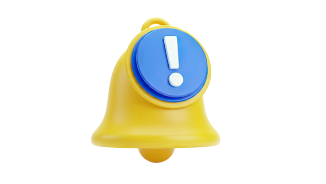3D Yellow Bell with Exclamation Mark Notification Icon