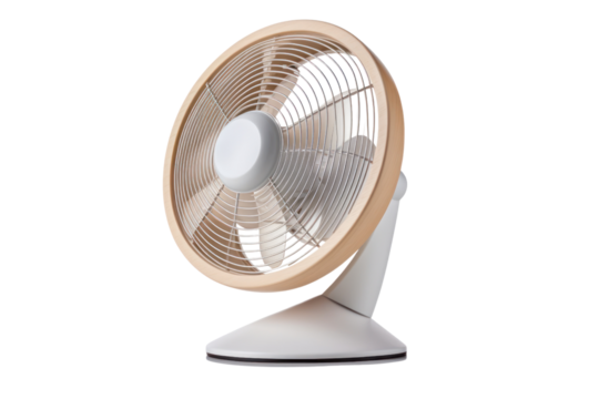 Modern white table fan on an isolated background, providing a refreshing breeze in any space.