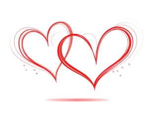 Continuous line drawing of two hearts on transparent background. Banner for valentine's day. Abstract hearts. PNG image ai generated