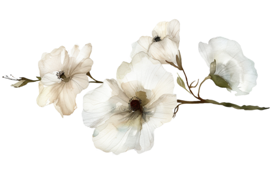 Close-up of a delicate white flower with intricate petals, isolated on a white background. Ideal for nature, botanical, and floral design projects.