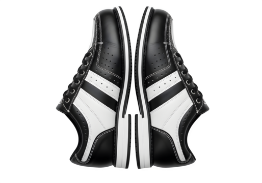 A pair of black and white casual sneakers, offering a classic and stylish look, isolated on transparent background for a clean and modern presentation