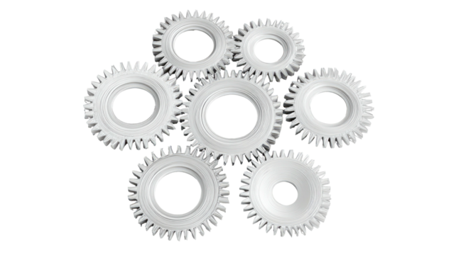 Interlocking metal gears isolated on a transparent background.PNG