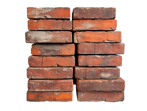 Stacked red bricks, arranged geometrically on white background. PNG transparent.