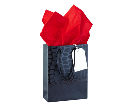 A blank gift card suspended by a knotted red rope against a clean white backdrop, ideal for adding a festive touch to your holiday decorations.