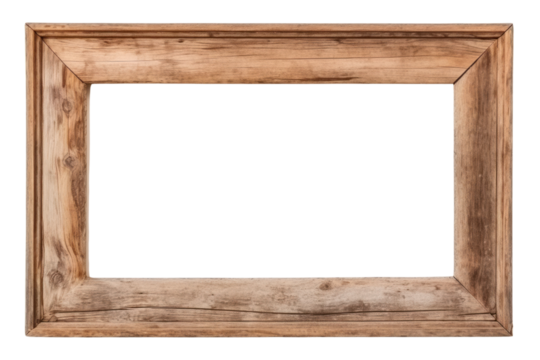 Old wooden frame or photo frame, On a transparent background. Isolated.