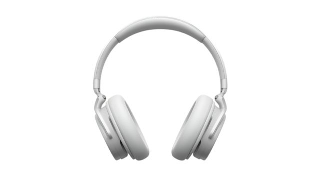 A modern white headphone with cushioned ear pads and adjustable headband, isolated on white background or transparent PNG.