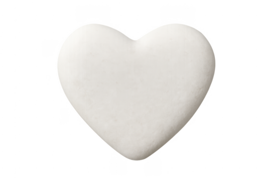 Isolated white heart shape, 3D rendering with soft shadows, against a black background