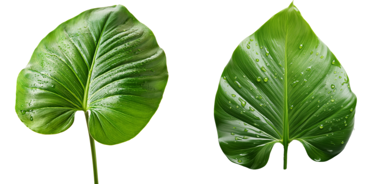 Homalomena leaf with waterdrops. 4k cutout transparent background isolate