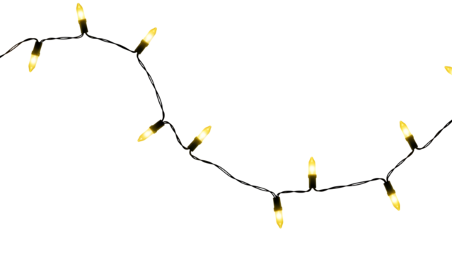 String of warm white fairy lights isolated on transparent background. String lights isolated on white background.