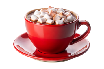 Hot chocolate with fluffy marshmallow in white cup on saucer, rich cocoa drink, cozy and inviting, perfect for winter comfort and relaxation