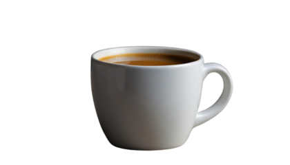 Elegant single white coffee cup in ceramic mug, isolated on transparent and white background.PNG image.