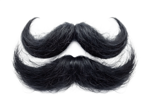 Detailed close up of a black handlebar mustache, with curled ends, cutout, PNG isolated on white or transparent background