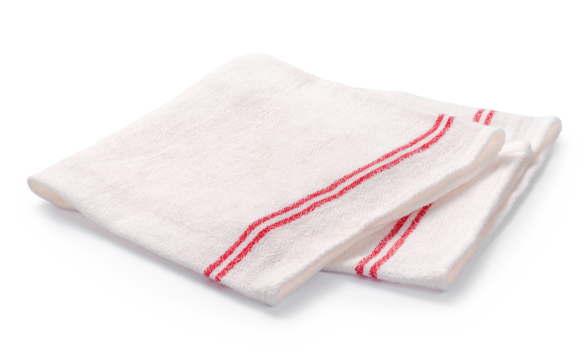 A stack of neatly folded white cloth napkins isolated on a transparent background