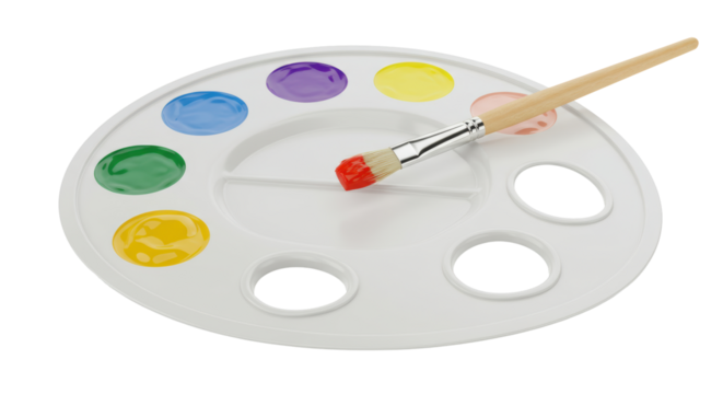 Wooden 's palette displays dollops of brightly colored thick painting medium against a dark background
