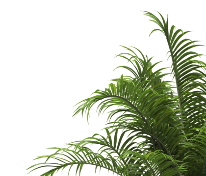 Tropical palm leaves isolated on transparent background. Palm Tree Branch PNG background. Areca palms leaves. palm leaf PNG, green leaf, tropical leaves. cutout isolate palm foliage PNG. Cascade palm.