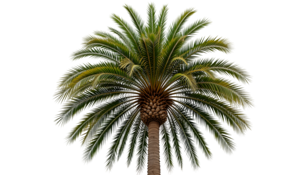 Palm Tree on. A single palm tree stands tall against a plain white background. Its green fronds and textured trunk are prominently displayed in this minimalist composition.