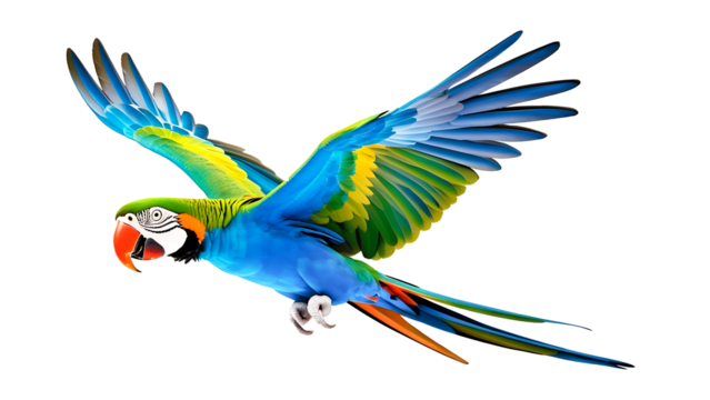 Exocotic colorful parrot on tree branch isolated on transparent or white background