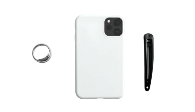 Angled overhead shot of a white phone, with camera bump, isolated on black