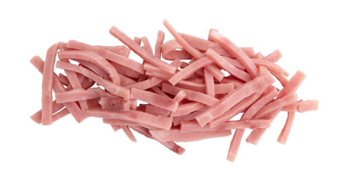 pieces of ham isolated on white background