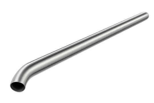 Bent metal pipe or steel tube with shiny chrome finish. Industrial component for fluid transfer and exhaust systems